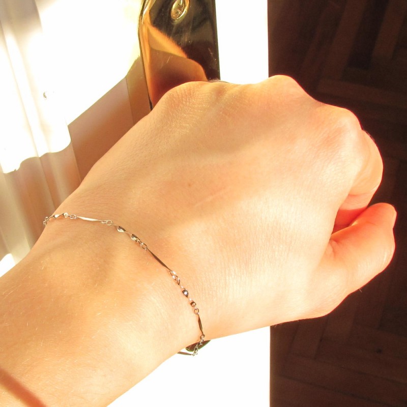 Překrásný jemný řetízek na ruku vyrobený ze 14-ti karátového bílého zlata. Velikost řetízku lze nastavit mezi 18-19 cm. Váha: 0.90g Au 585/1000. Šperk obdržíte v jednoduché dárkové krabičce.