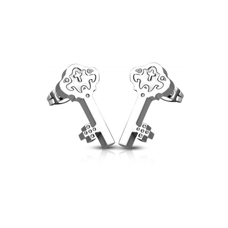 Decentní náušnice ve tvaru klasického klíče. Vyrobeny jsou z hypoalergenní chirurgické oceli, takže se nemusíte obávat alergických reakcí. Vhodné pro každodenní nošení.