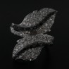 Masivní dámský prsten zepředu vytvarovaný do podoby dvou listů. Prsten je vyroben z rhodiovaného stříbra ryzosti 925/1000 a osazen černými a čirými zirkonovými kamínky. Rhodiační povrchová úprava chrání šperk před korozí a černáním a zvyšuje jeho lesk. Prsten nabízíme v různých velikostních variantách (viz níže).