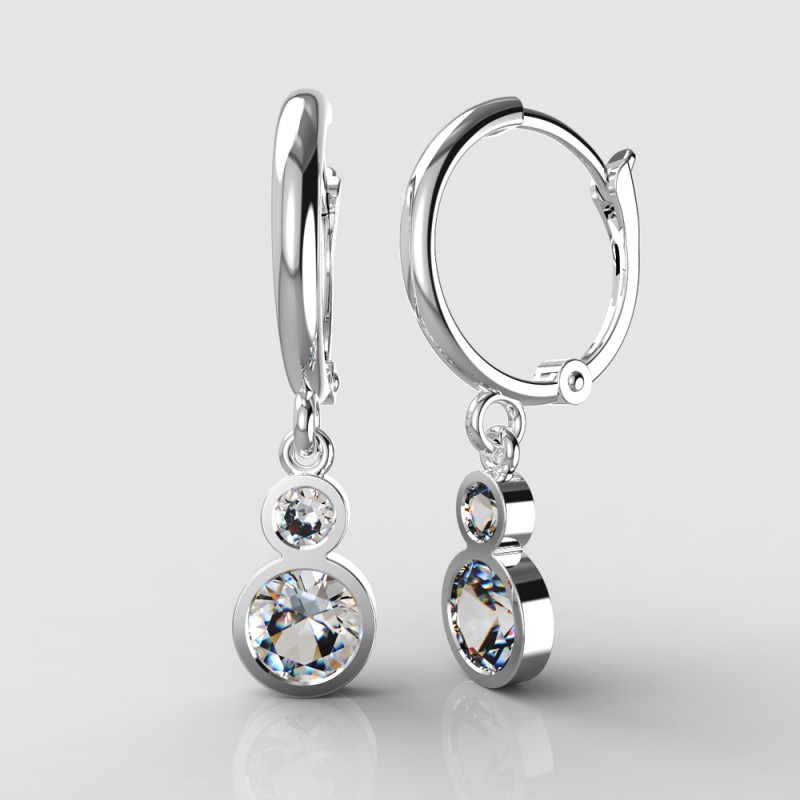 Elegantní dívčí kroužky se zavěšenými zirkony. Náušnice jsou vyrobeny ze 14-ti karátového bílého zlata. Doporučujeme je především slečnám mladšího školního věku (cca od 5 let). Orientační váha šperku: 1.42g Au 585/1000. Pozn.: v případě zájmu možno vyrobit i v 18-ti karátovém zlatém provedení.