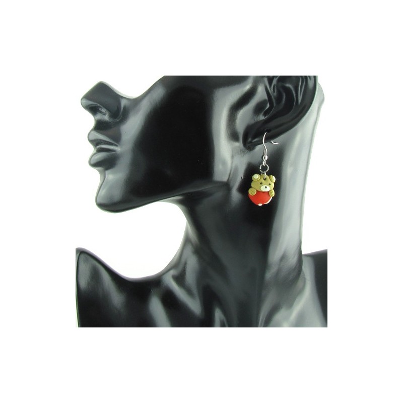 Nádherní medvídci držící srdíčka vyrobení z modelíny FIMO. Tato polymerová hmota vynalezená v Německu představuje skvělý materiál právě např. pro výrobu šperků, doplňků, dekorací atd., díky čemuž se stala celosvětově velmi populární. Náušnice doporučujeme k běžnému nošení.