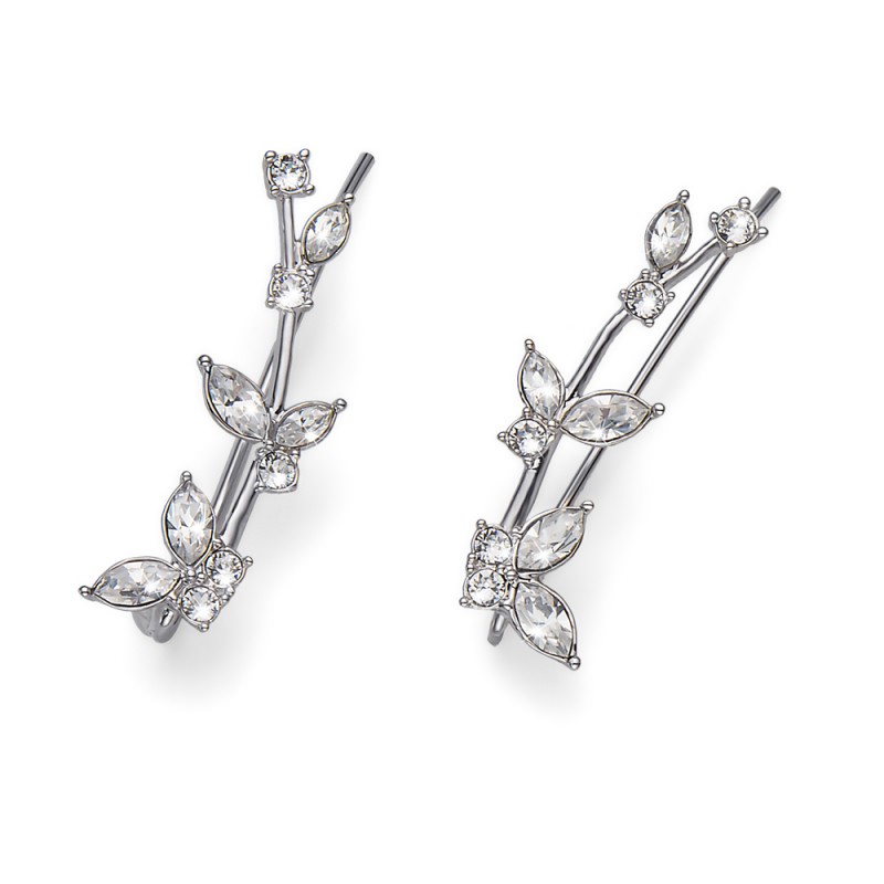 Zobrazit větší Nádherné náušnice Oliver Weber Butterfly vyrobené ze rhodiovaného bižuterního kovu a zdobené jemnými kamínky Swarovski. Šperk v podobě ratolesti půvabně lemuje ucho směrem vzhůru a dodává ženskému vzezření neobyčejnou něhu. Hodí se na romantické večeře, na ples anebo na svatbu.
