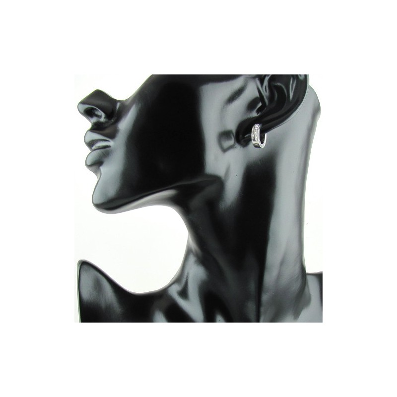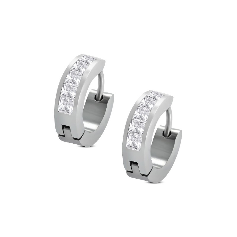 Elegantní unisex náušnice - kroužky vyrobené z chirurgické oceli. Chirurgická ocel je kvalitní hypoalergenní materiál, který je vysoce odolný vůči korozi a využívá se nejen v lékařství, ale i pro výrobu šperků. Kroužky mají v průměru cca 13 mm. Z přední strany je zdobí řádka průzračných krystalů.