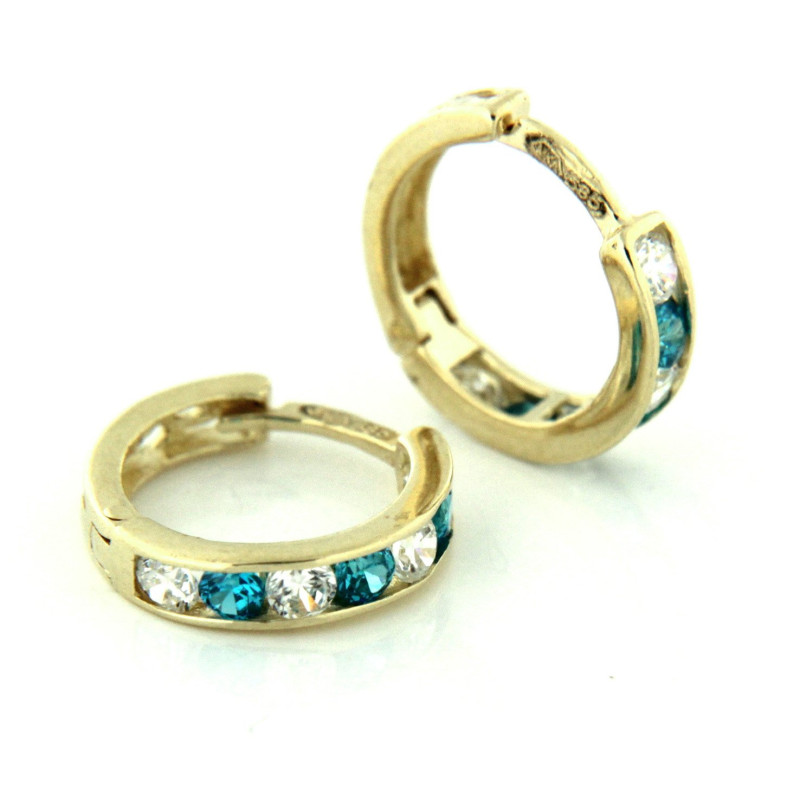 Luxusní kroužky vyrobené ze 14-ti karátového žlutého zlata a zdobené čirými a modrými zirkony. Šperk je svou velikostí vhodný pro dívky školního věku (cca od 5 let).